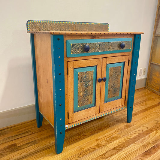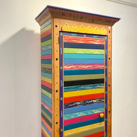 Tommy Lewis Marsh Style Colorful Tall Cabinet with Drawer