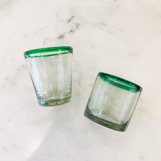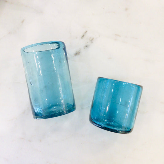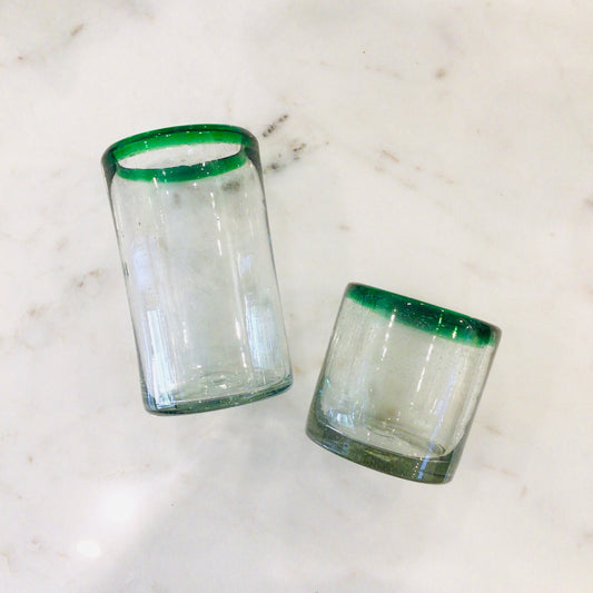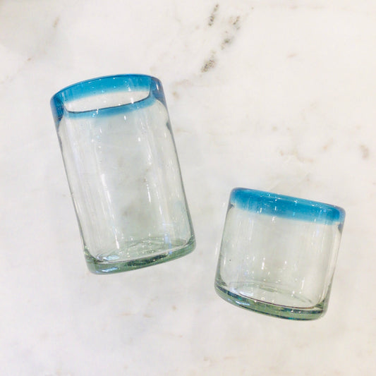 Mexican Glass V-shaped Tumbler - Teal Rim