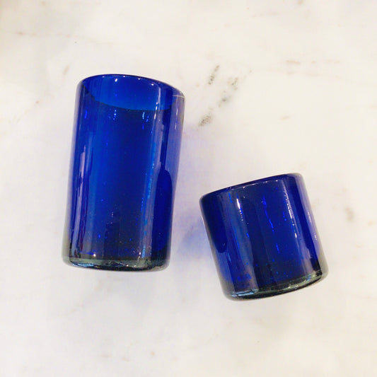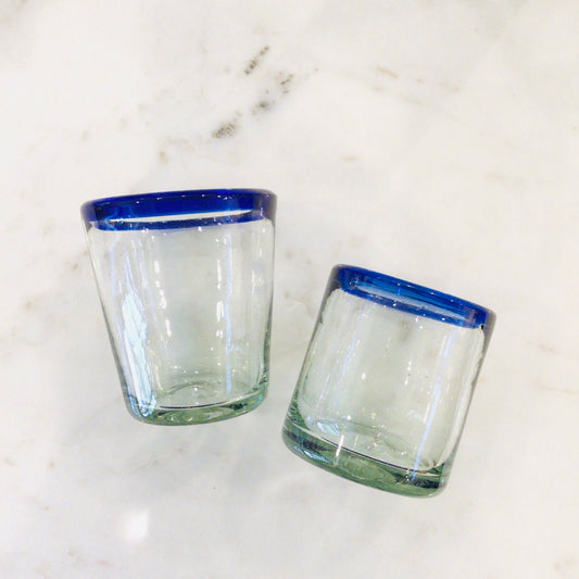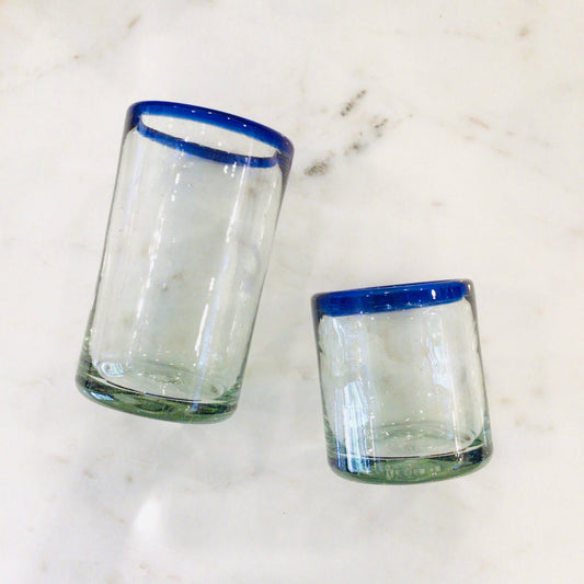 Mexican Glass V-shapd Tumbler - Blue Rim