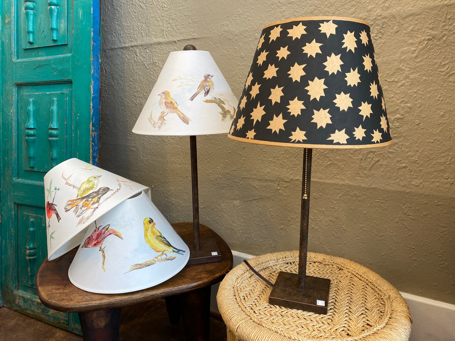 In addition to our selection of ready made lamps, we also make our own and provide rewiring and repair services! Explore hand built and hand painted one of a kind bases and shades. Or talk to us about rewiring your old favorite lamp!