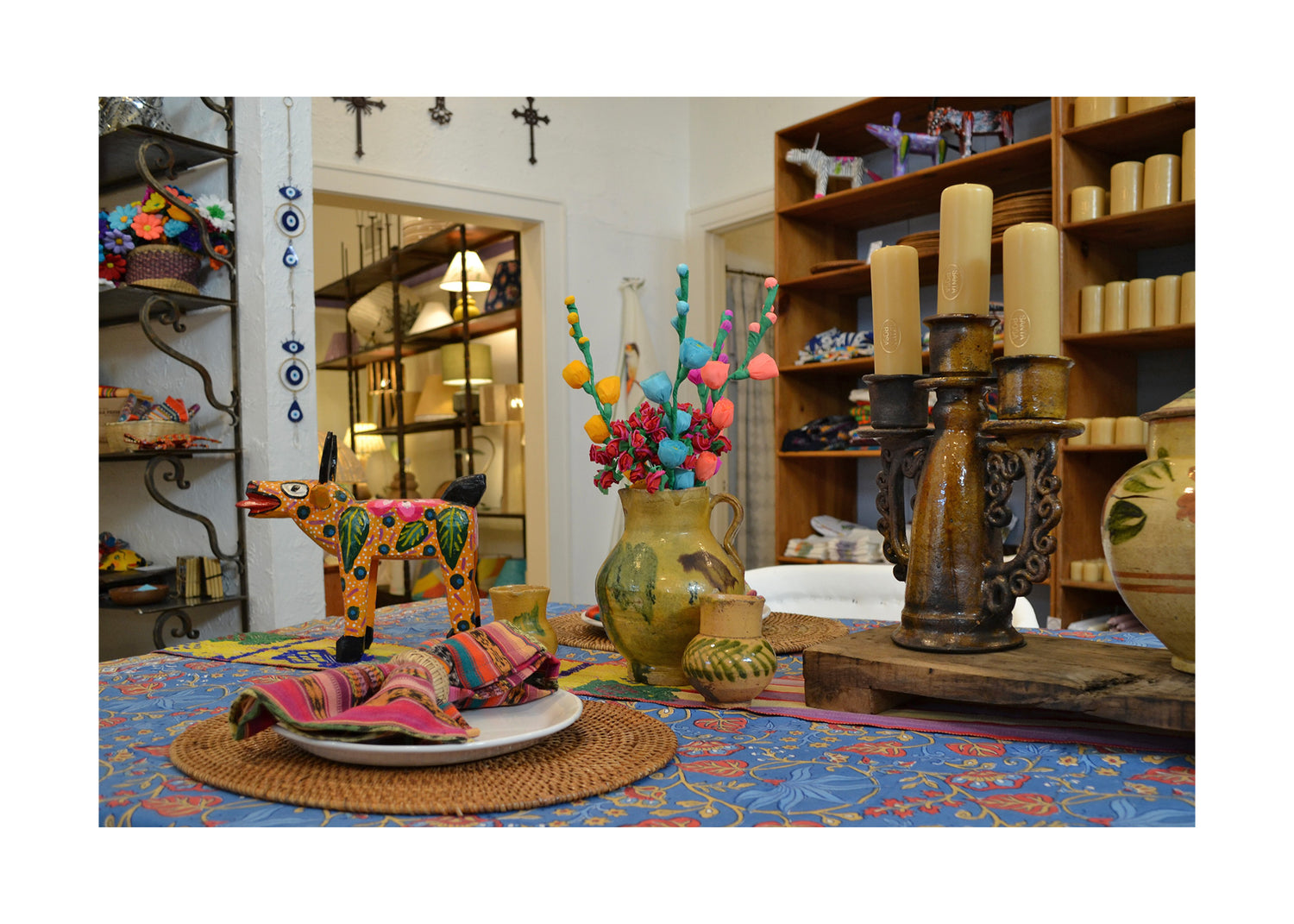 We specialize in the eclectic, handmade, and globally sourced items. This includes specialty ceramics, unique textiles, folk art, glassworks, and table and bed linens. We carry works by Gorky Gonzalez, Alex Marshall, D'Casa, Blenko Glass, Rose Ann Hall, Natural Habitat and more!