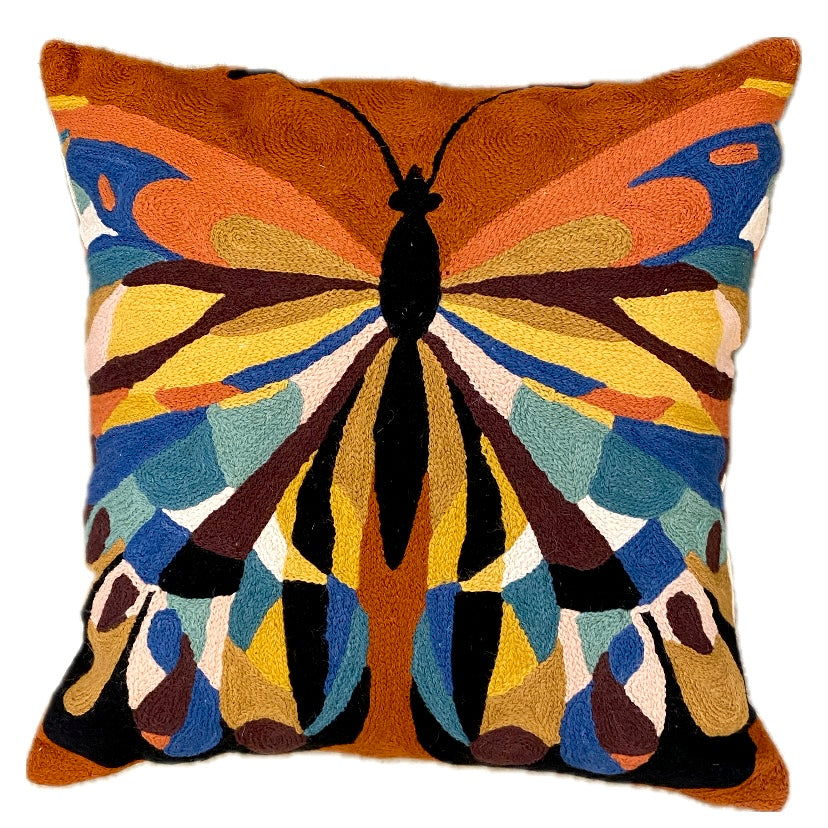 Art Nouveau Butterfly Chainstitch Pillow