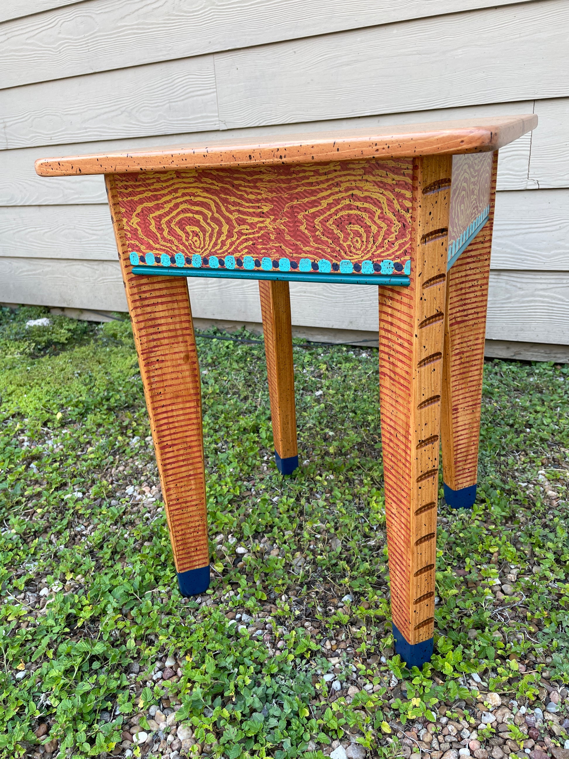 Each piece of David Marsh furniture is handcrafted at the studio of local artist David Marsh here in Houston, TX. All David Marsh furniture is crafted from yellow pine and has a very sturdy polyurethane finish making the furniture great for everyday use. Measures 18”x18”x24”tall