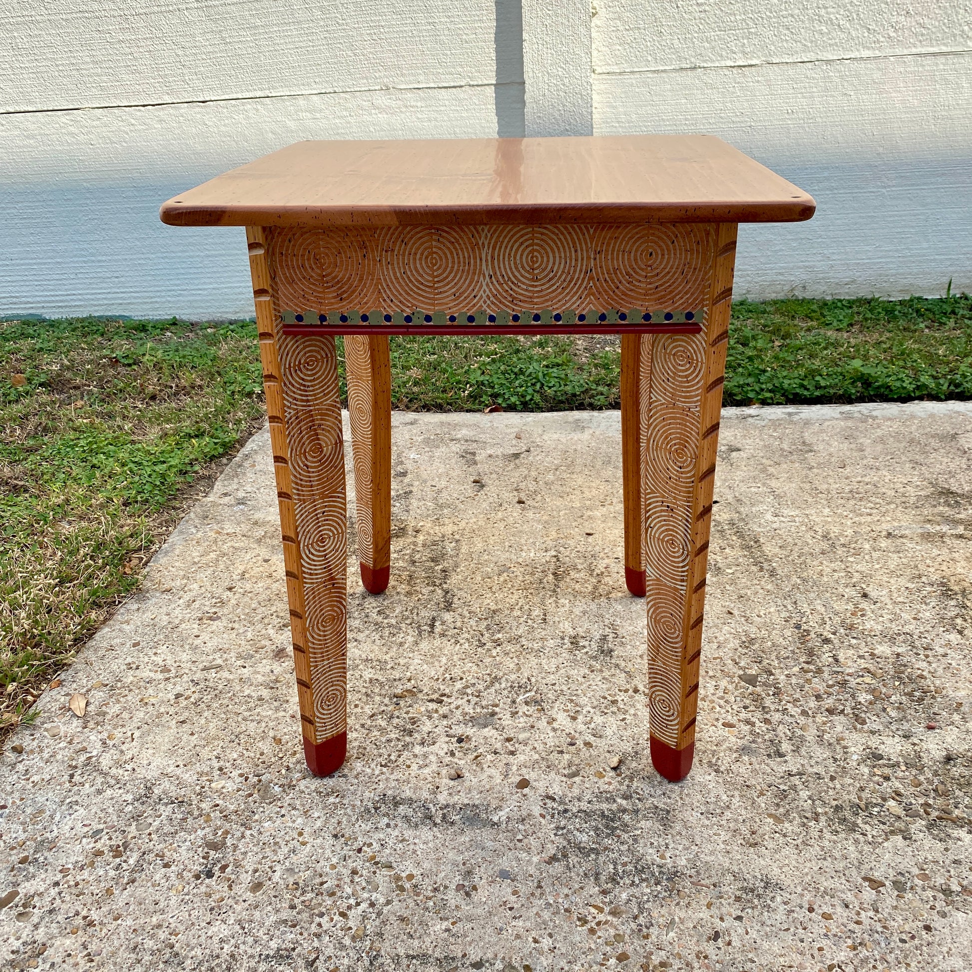 Each piece of David Marsh furniture is handcrafted at the studio of local artist David Marsh here in Houston, TX. All David Marsh furniture is crafted from yellow pine and has a very sturdy polyurethane finish making the furniture great for everyday use. Measures 22”x22”x26”tall