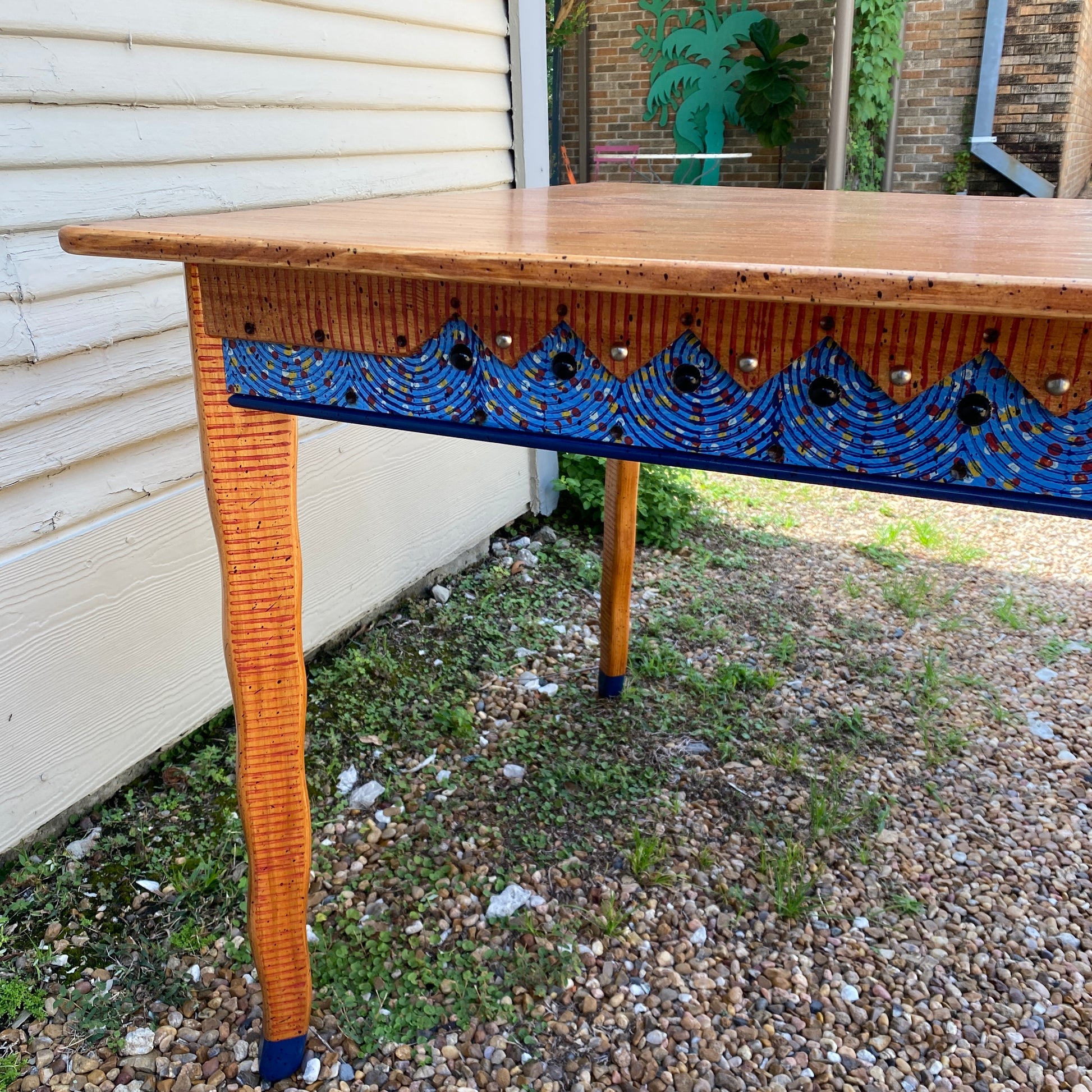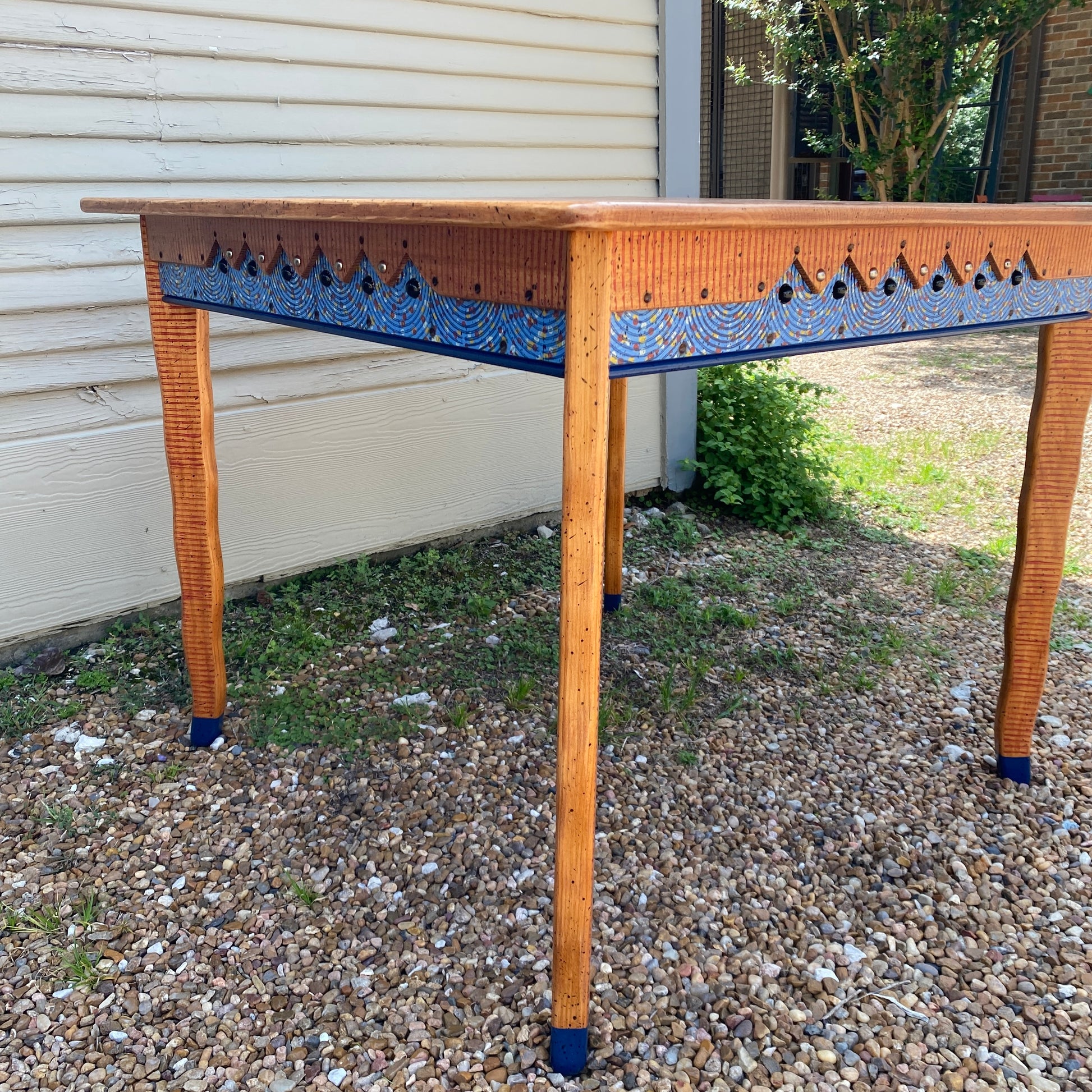 Each piece of David Marsh furniture is handcrafted at the studio of local artist David Marsh here in Houston, TX. All David Marsh furniture is crafted from yellow pine and has a very sturdy polyurethane finish making the furniture great for everyday use. Measures 38” x 38” x 30”tall