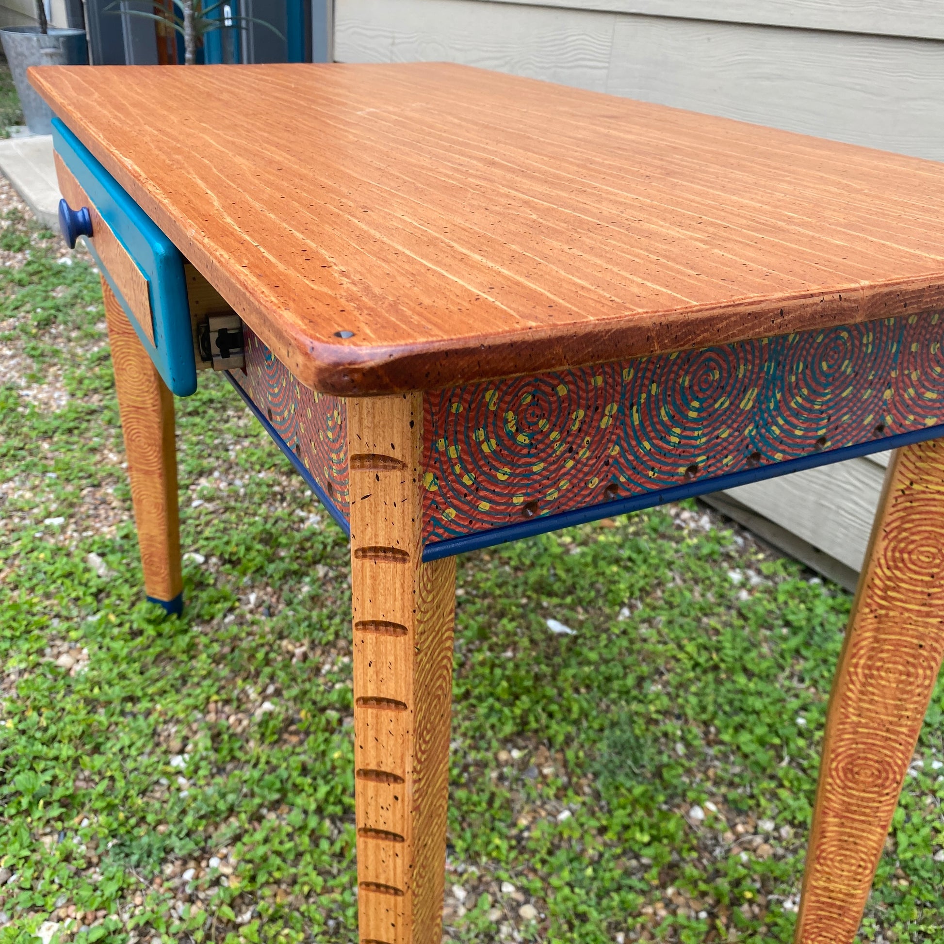 Each piece of David Marsh furniture is handcrafted at the studio of local artist David Marsh here in Houston, TX. All David Marsh furniture is crafted from yellow pine and has a very sturdy polyurethane finish making the furniture great for everyday use. Measures 42” x 22” x 30”tall