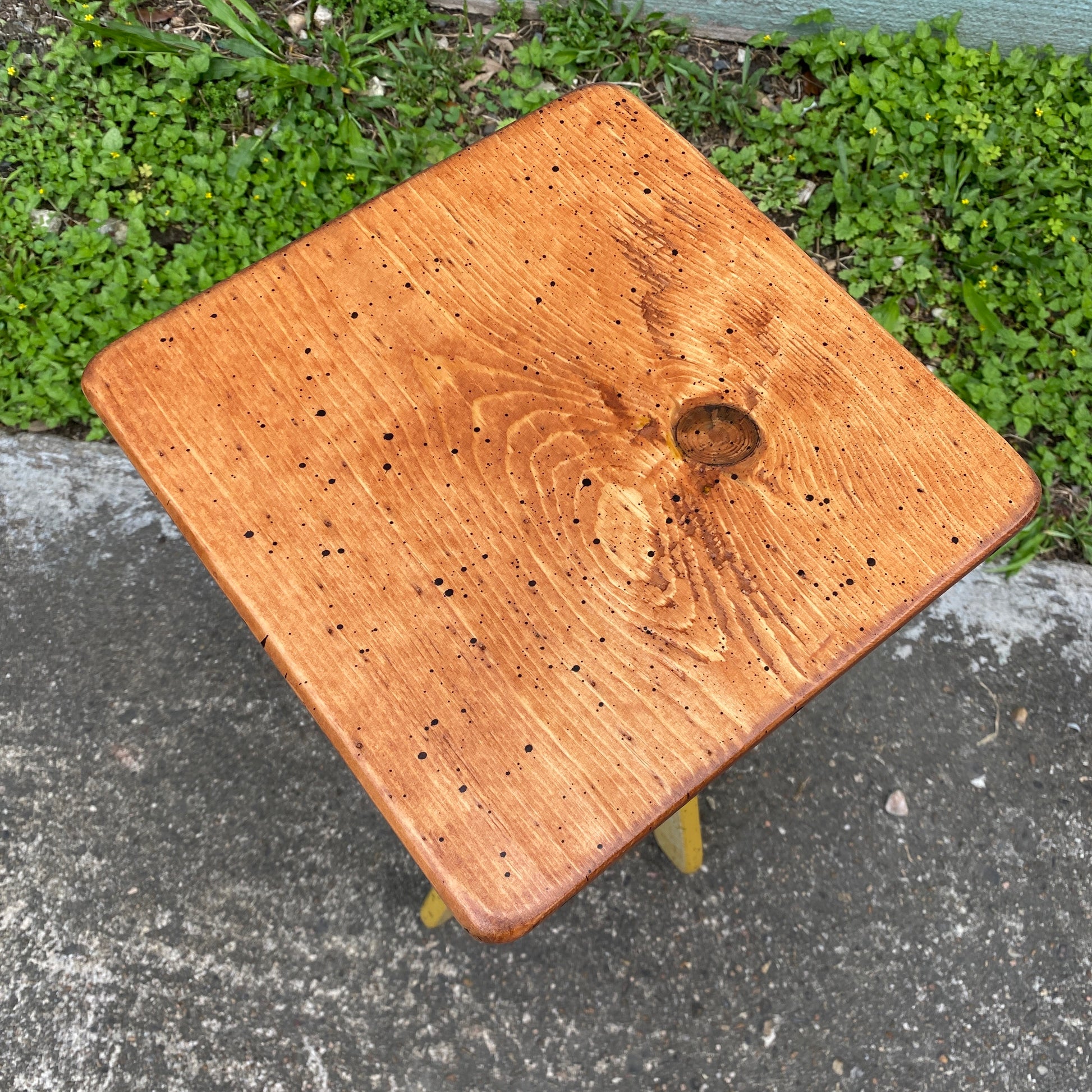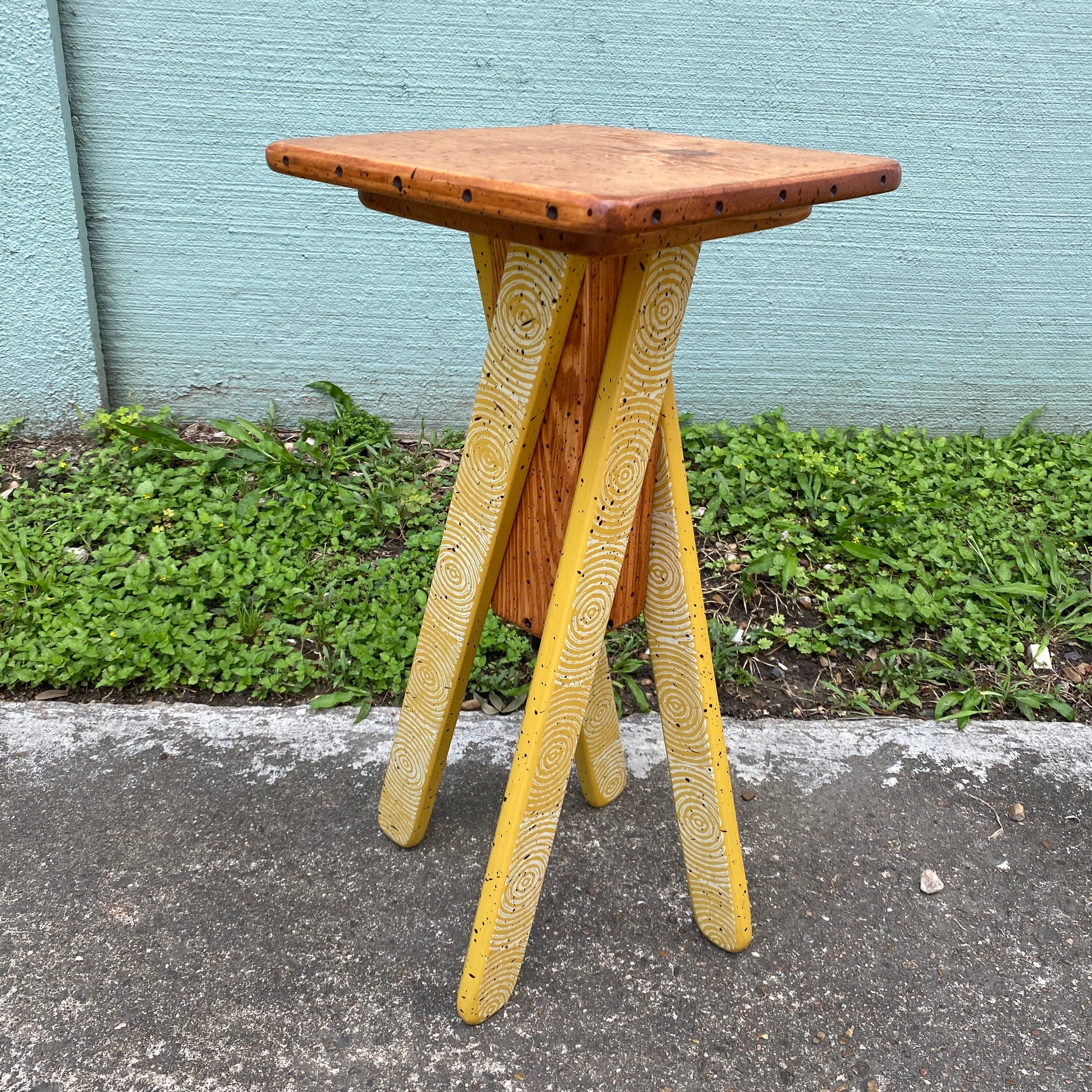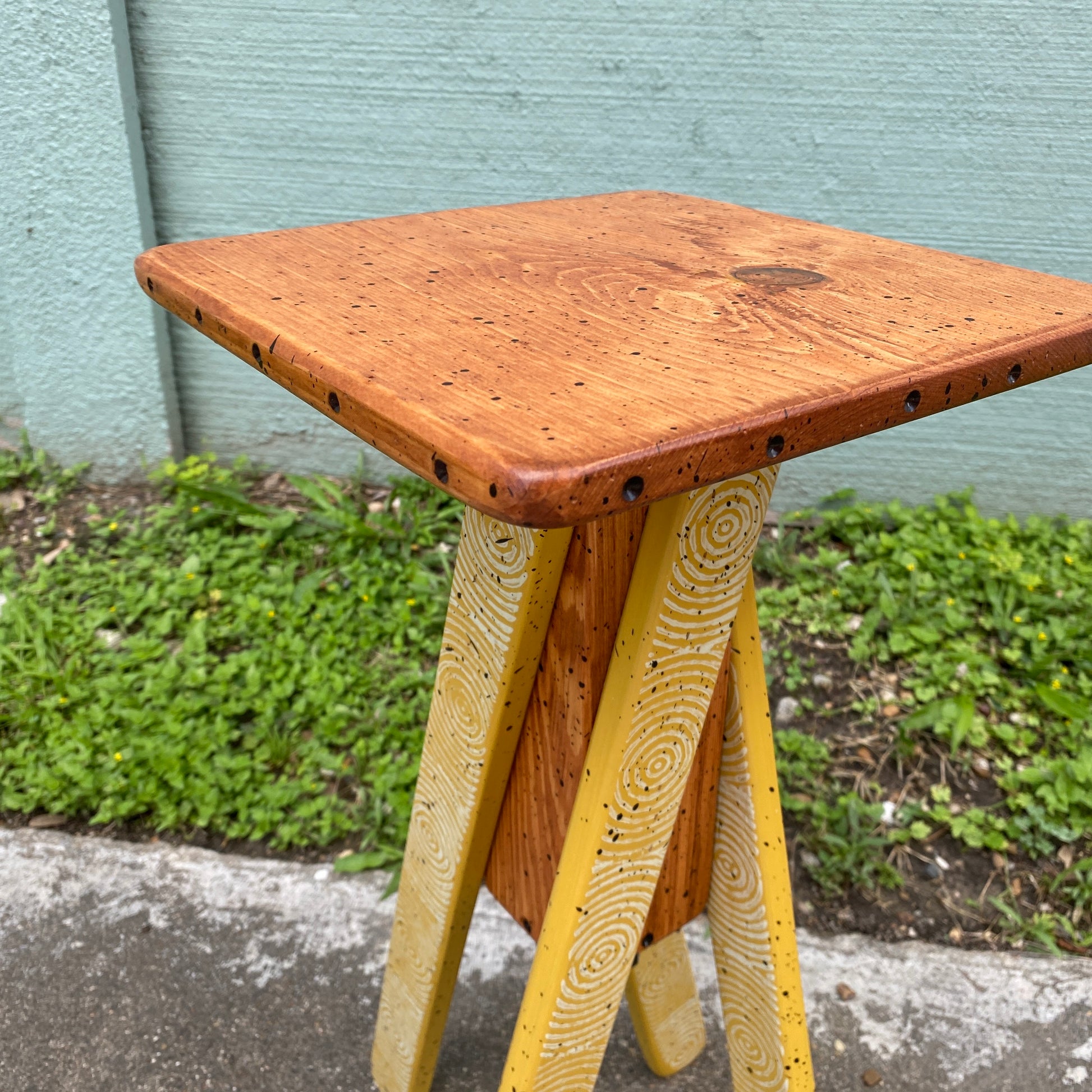 Each piece of David Marsh furniture is handcrafted at the studio of local artist David Marsh here in Houston, TX. All David Marsh furniture is crafted from yellow pine and has a very sturdy polyurethane finish making the furniture great for everyday use.  This table is small and light weight so it can fit in tight spaces or be easily moved around to suit your needs.  11" x 11" x 22" tall