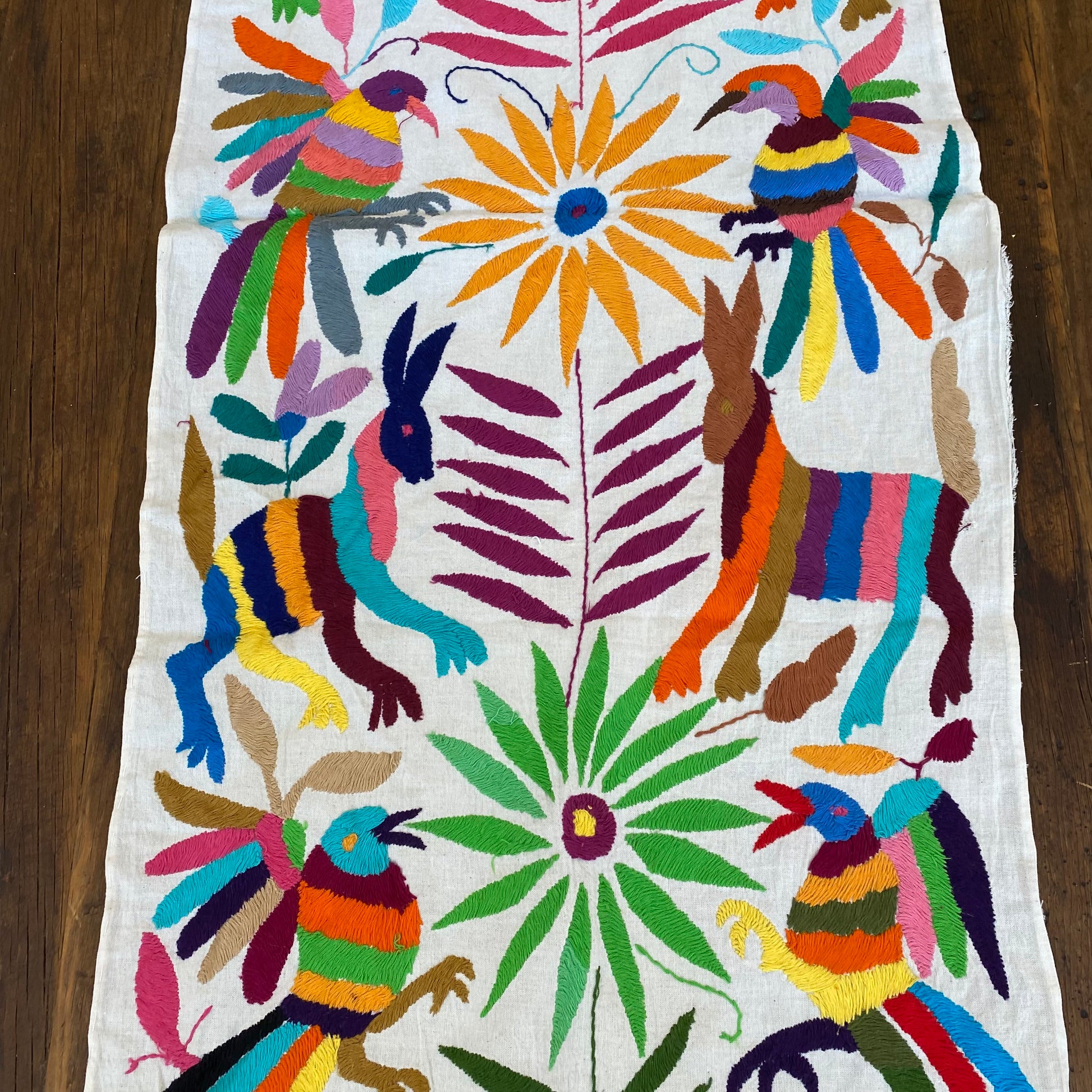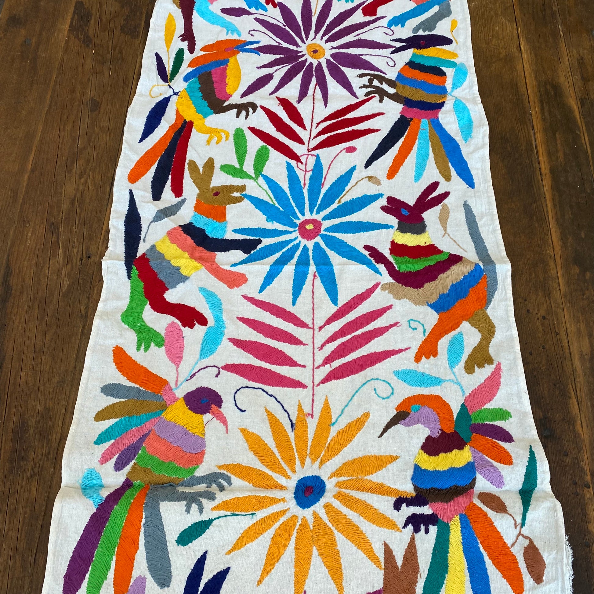 Large Otomi Runner- Multicolor with Flowers and Animals- G