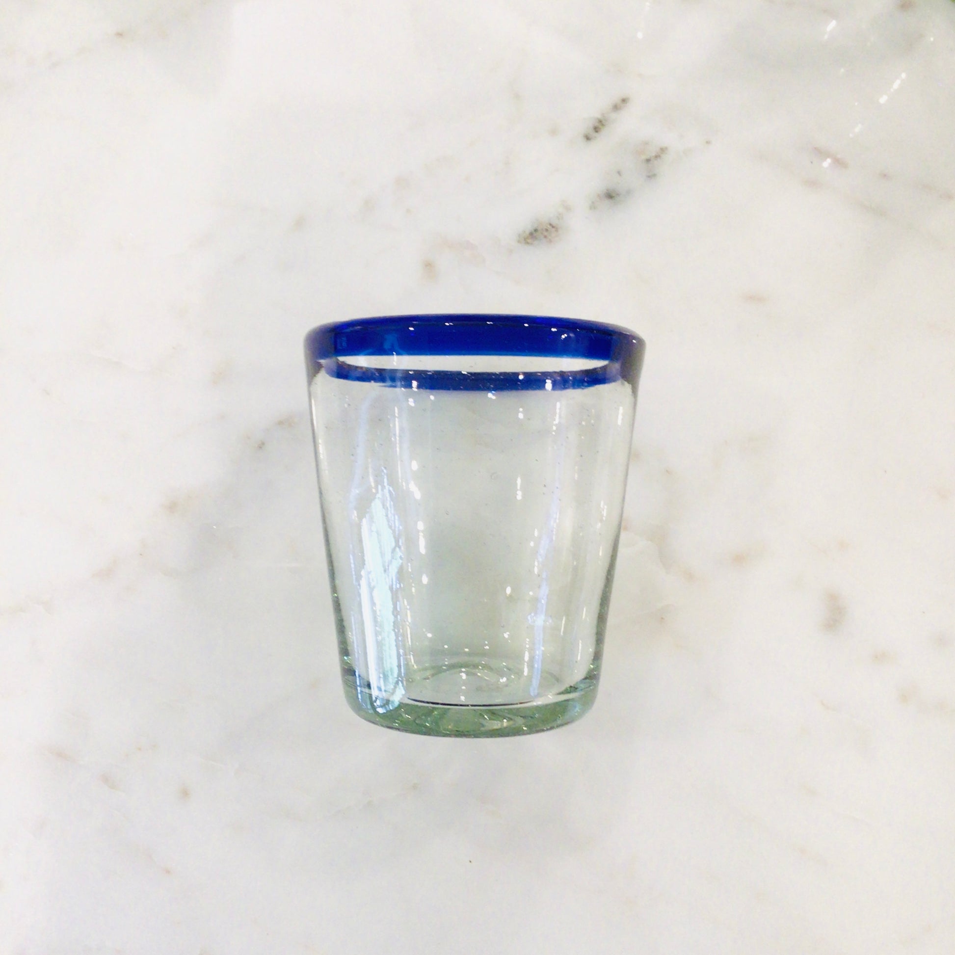 Mexican Glass V-shapd Tumbler - Blue Rim