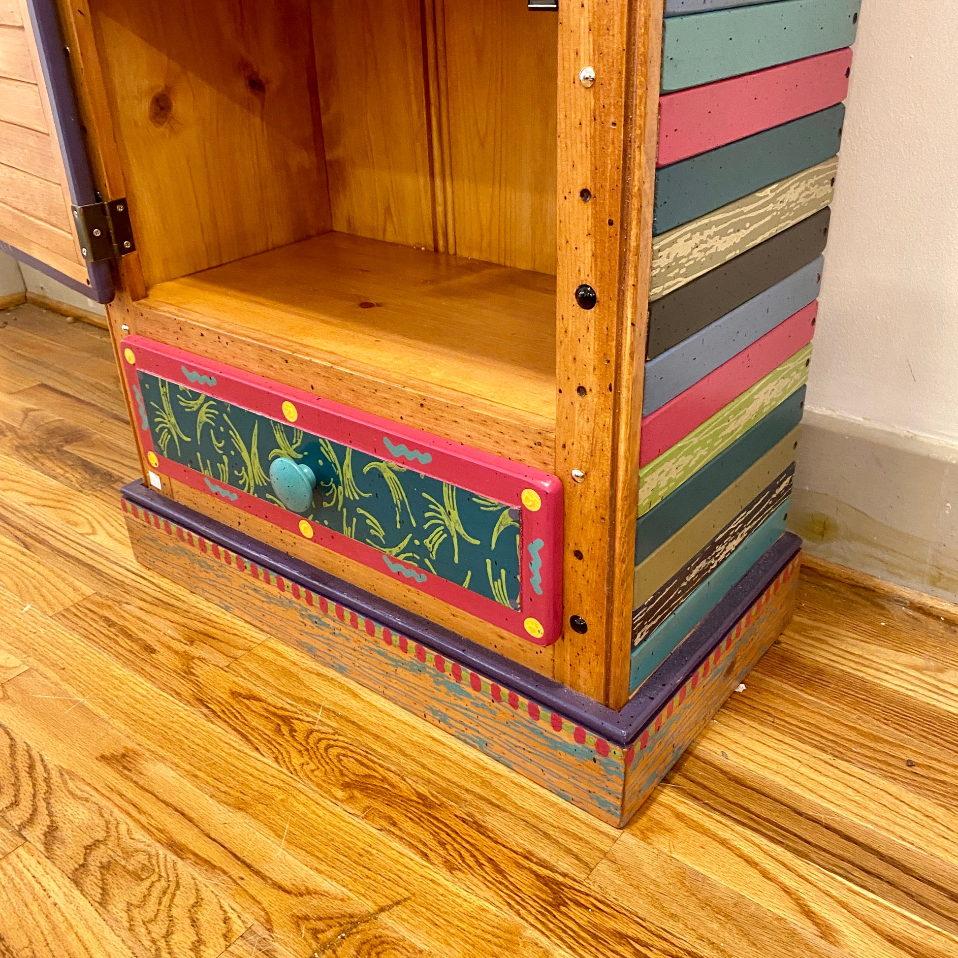 Tommy Lewis Marsh Style Colorful Tall Cabinet with Drawer